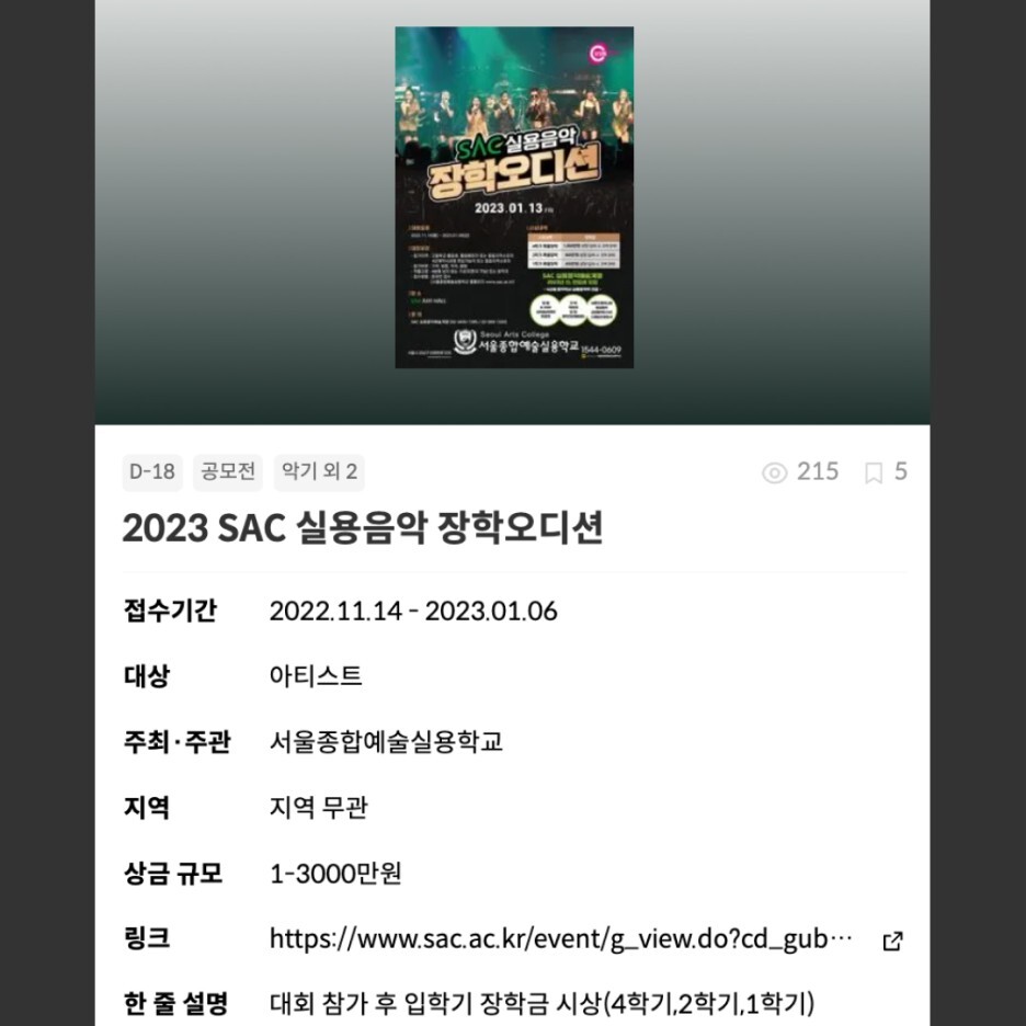 2023 SAC 실용음악 장학오디션 | 음악 정보부터 커뮤니티까지 - 버브그라운드