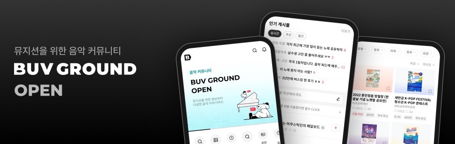 🎉많은 뮤지션분들에게 정보를 편히 제공하고자, 음악 커뮤니티 BUV GROUND를 오픈했습니다!🎉
