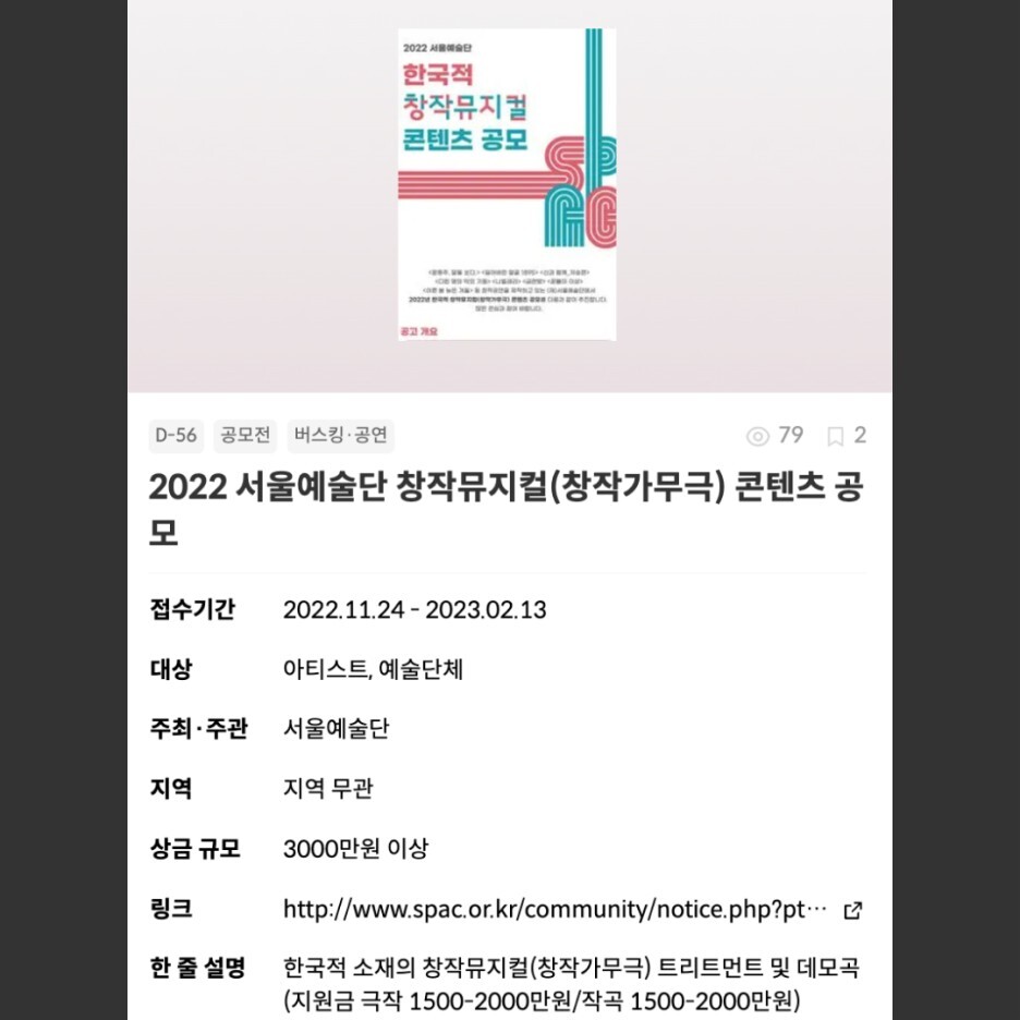 2022 서울예술단 창작뮤지컬(창작가무극) 콘텐츠 공모 | 음악 정보부터 커뮤니티까지 - 버브그라
